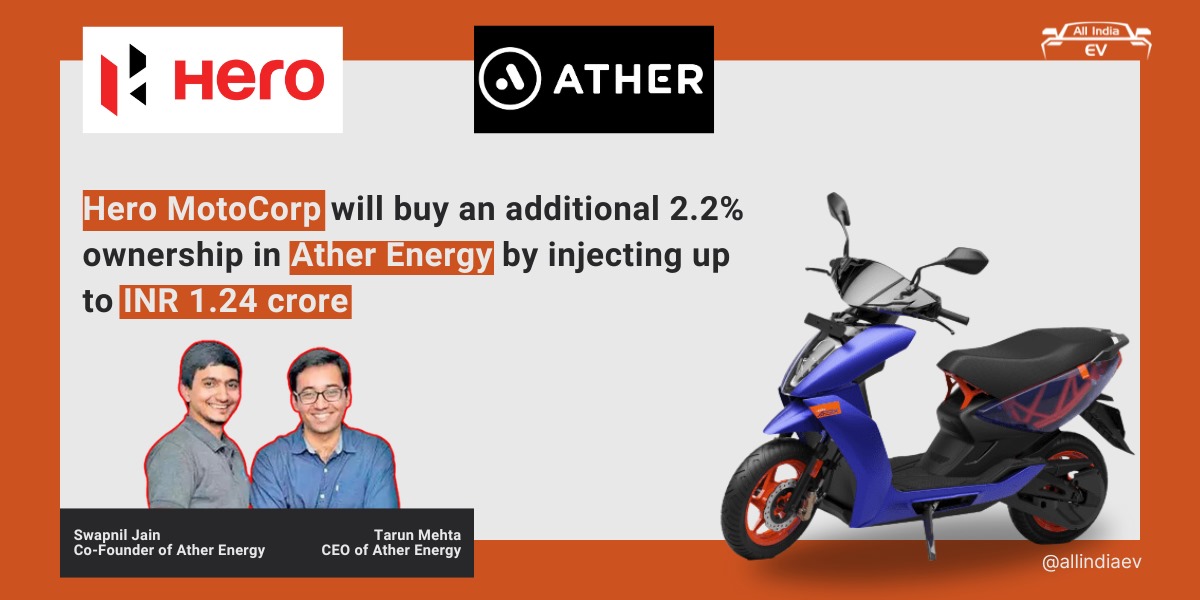 Hero MotoCorp Invests Rs 124 Crore in Ather Energy, Boosting Valuation by 20% to Rs…
