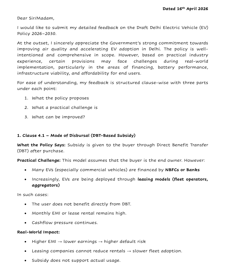 The Draft Delhi Electric Vehicle Policy 2026–2030 has arrived at the right moment. Delhi’s air quality crisis is undeniable, mobility electrification is inevitable, and the policy ticks many of the expected boxes — purchase incentives, charging infrastructure targets, and segment-wise electrification mandates.