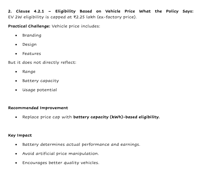 • Subsidies should be released in phases tied to actual vehicle usage, not just at the point of sale