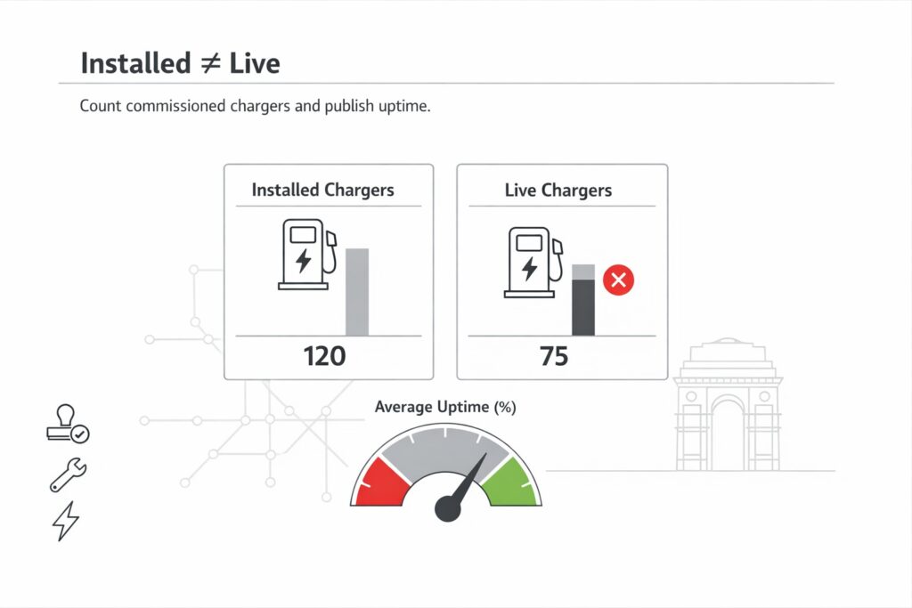 - Stop counting “installed chargers.” Count “live chargers” and publish uptime monthly.