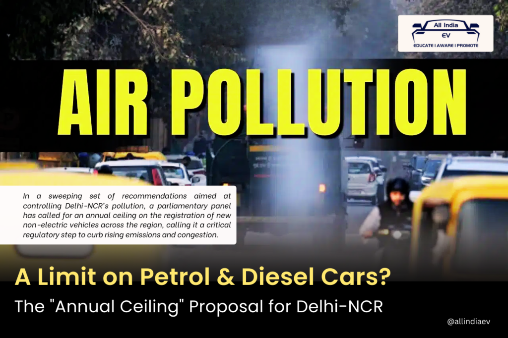 In a strong push towards cleaner mobility, a parliamentary panel has recommended placing an annual ceiling on the registration of new non-electric vehicles (non-EVs) in Delhi-NCR, calling it a crucial regulatory step to curb worsening air pollution and traffic congestion in the region.