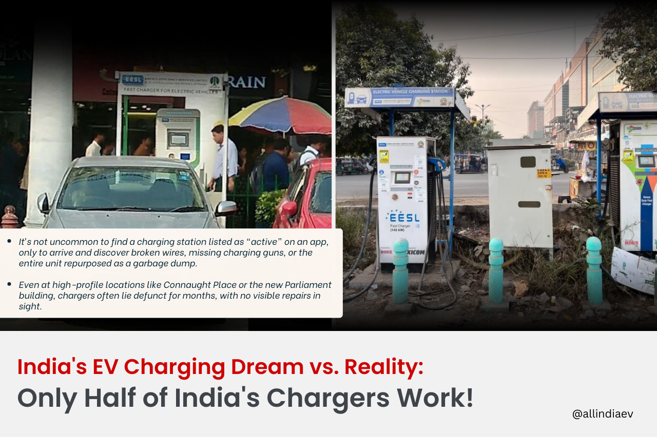 India’s EV charging dream faces a reality check as only half of the country’s chargers are functional, hindering electric vehicle adoption.